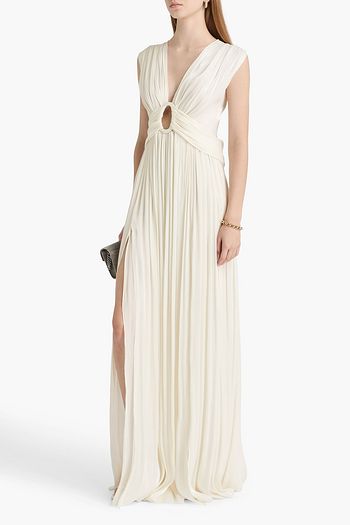 فستان سهرة Cyra من الكريب وبقِطع محاكة بجانب بعضها البعض من الساتان والكريب بتصميم منسدل