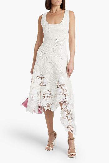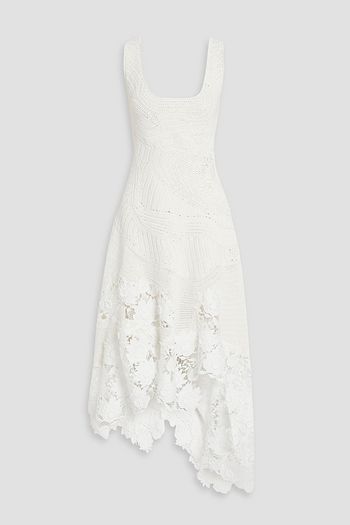 فستان متوسط الطول من نسيج محبوك بحواف من دانتيل غيبور