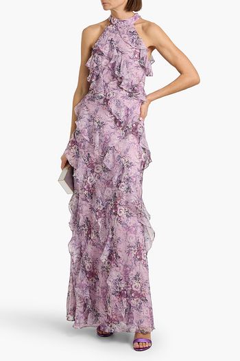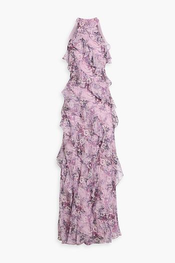 فستان طويل "ريمي" بياقة هالتر الدائرية مصنوع من التول بتصميم مزركش
