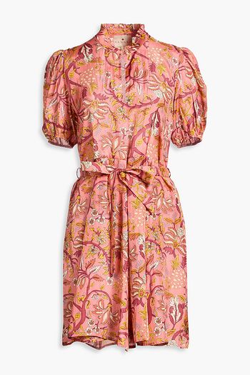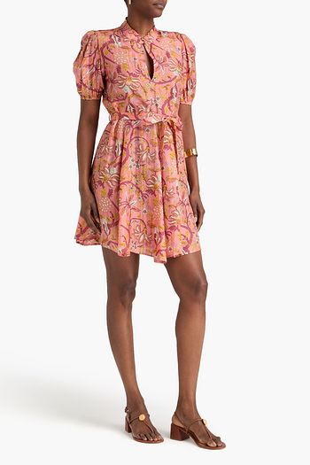 فستان قصير من مزيج الكتّان بكسرات وبطبعة الأزهار