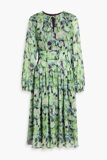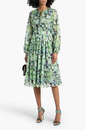 فستان Ophelia متوسّط الطول بثنيات من مزيج الحرير والصوف بطبعة أزهار