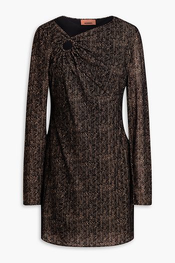فستان متوسط الطول من المخمل بلون ميتاليك بتصميم مزركش