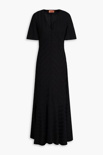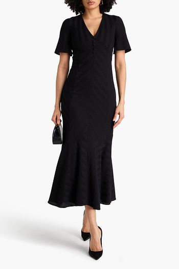 فستان متوسط الطول من الجيرسي المصنوع من مزيج من القطن المضلع مزين بفتحات