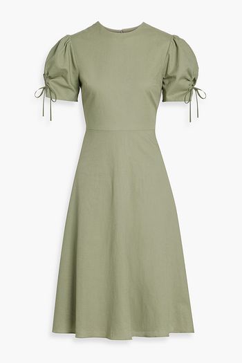 فستان متوسط الطول من الكتّان ومزين بطبعات