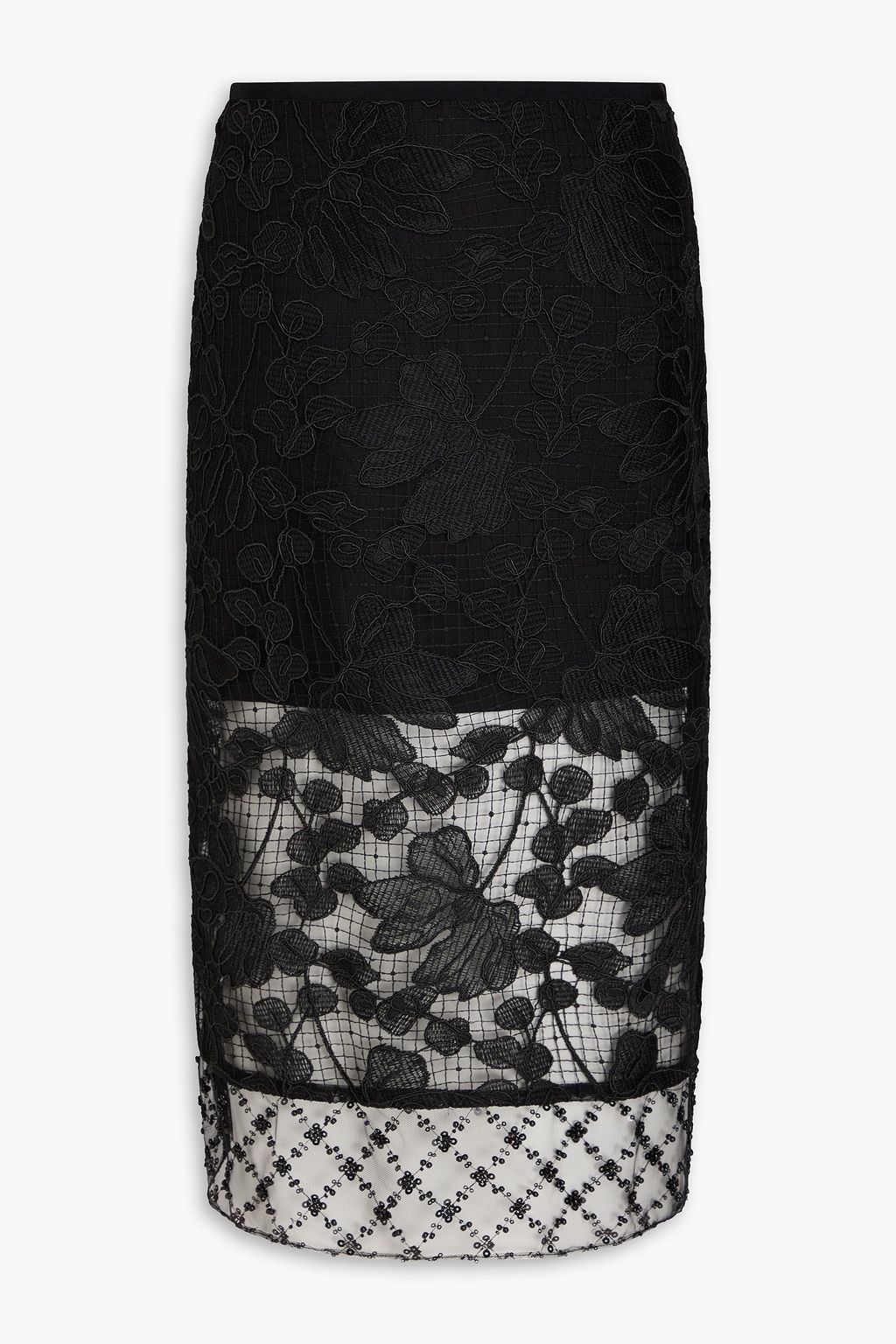 3.1 PHILLIP LIM تنورة متوسطة الطول من الدانتيل المفرغ المزين بالترتر