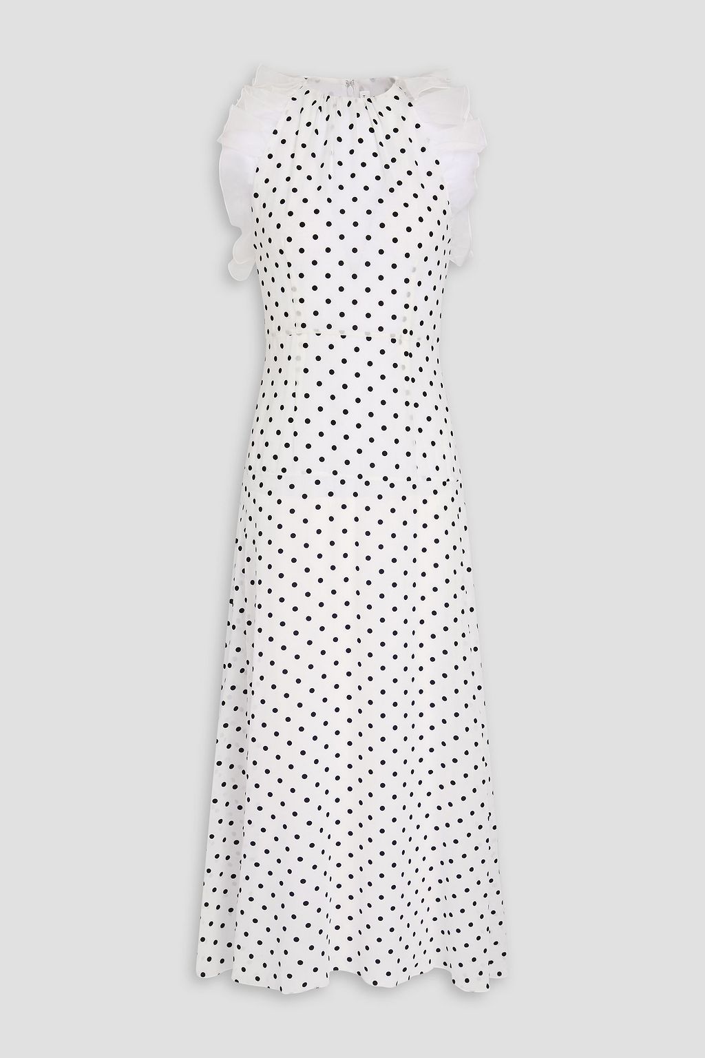 ALESSANDRA RICH فستان متوسط الطول بكشاكش من حرير جورجيت بنقشة البولكا دوت