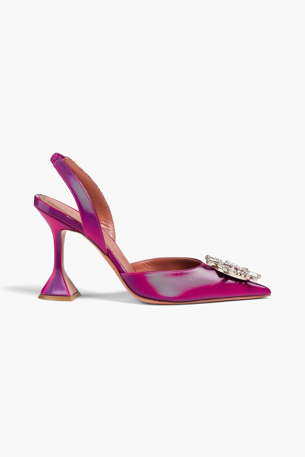 AMINA MUADDI حذاء بكعب عالٍ "بيجوم" بنقشة الجلد متقزح ومزود بحزام خلفي