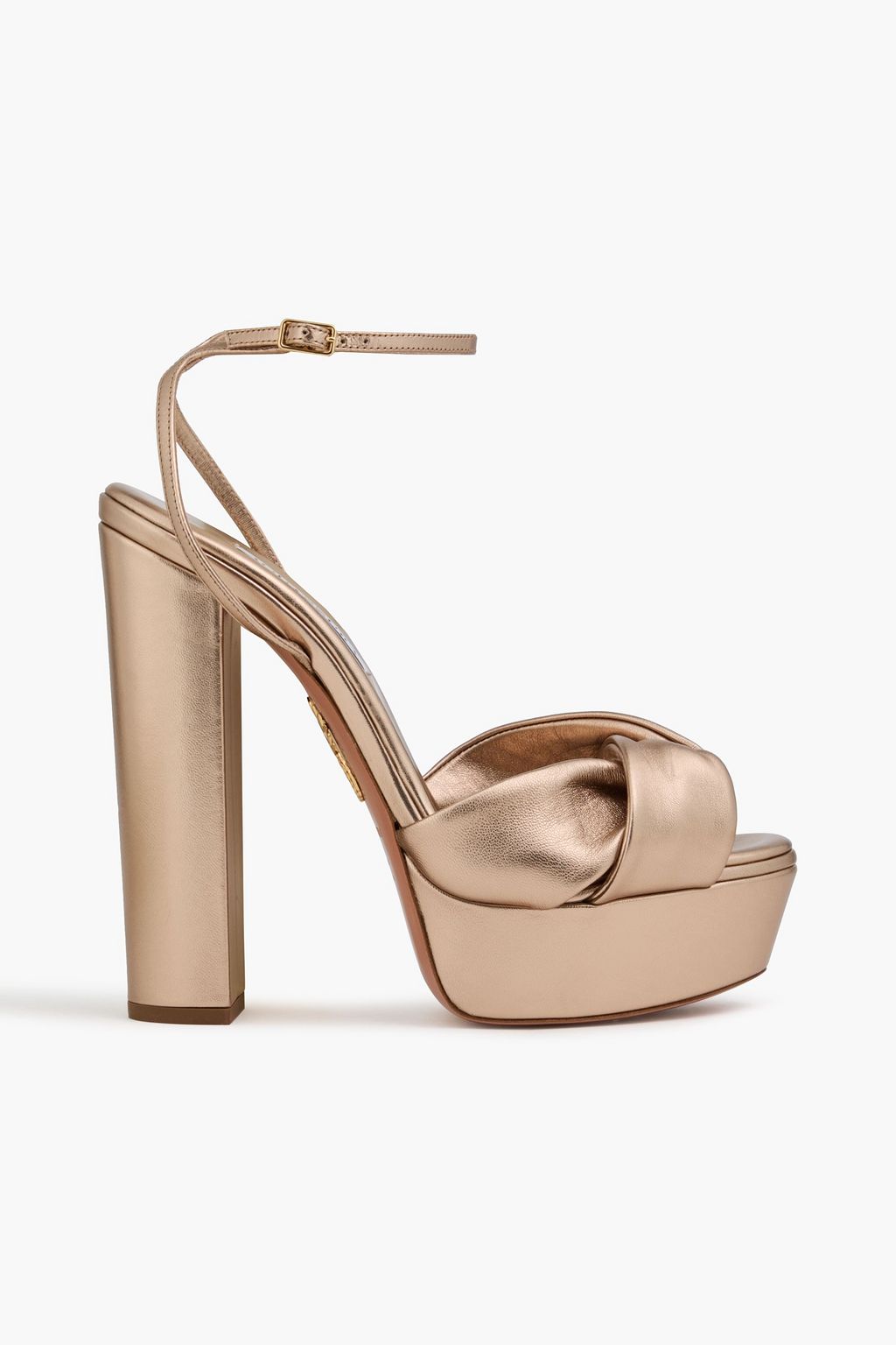 AQUAZZURA صندل "أولي" من الجلد بنعل سميك بلون ميتاليك وبتصميم متشابك