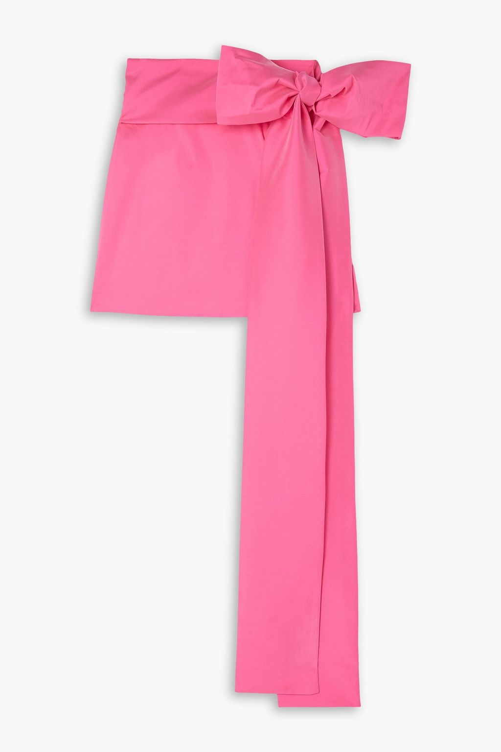 تنبض مجموعات BERNADETTE بحس مرح. صُنع هذا الإصدار الزهري اللون من تنورة 'Bernard' القصيرة الشهيرة من العلامة من التفتا الإيطالي وزُين بعقدة كبيرة تتدلى بأناقة على طول أحد الجانبين. ارتديها مع بلوزة بياقة طويلة وحذاء ميول.
