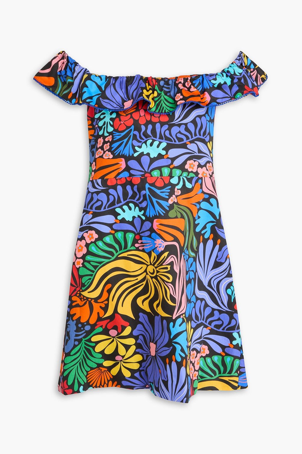 BORGO DE NOR فستان "نالاني" قصير من القطن بتصميم مكشوف الكتفين بطبعة الأزهار