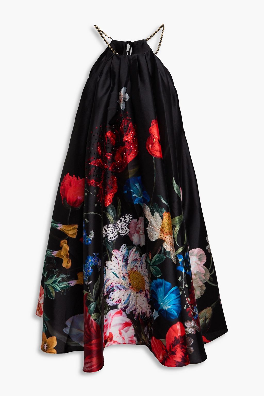 CAMILLA فستان قصير من قماش التفتا بطبعة الأزهار ومزركش