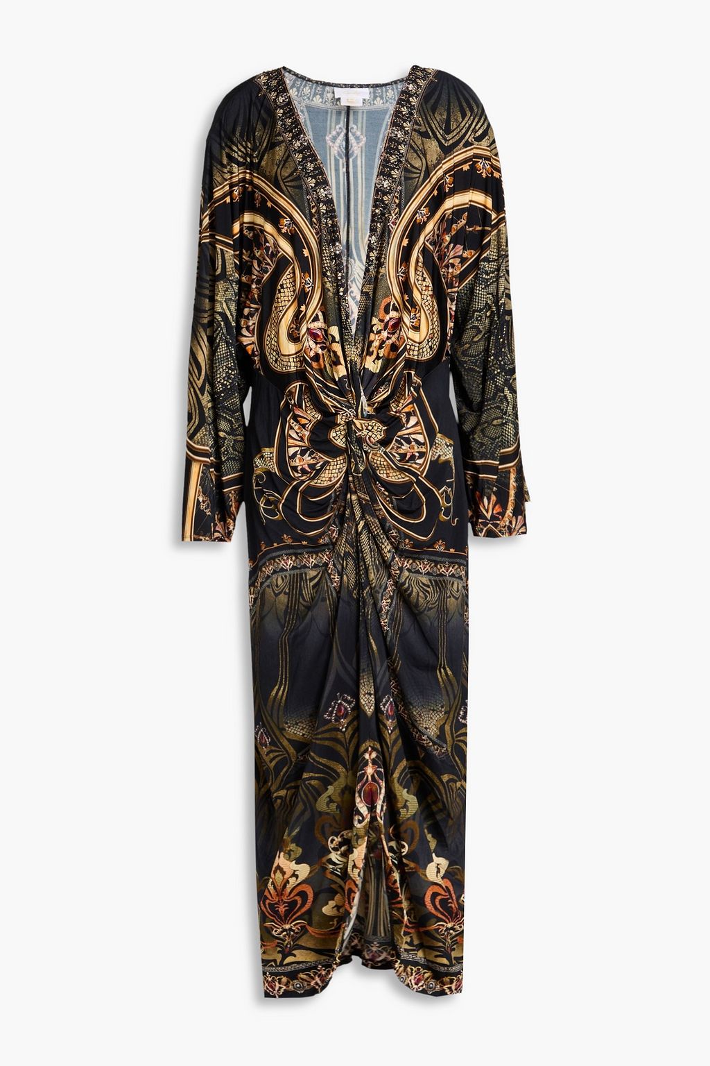 CAMILLA فستان متوسط الطول من الجيرسي بتصميم متشابك مزين بطبعات
