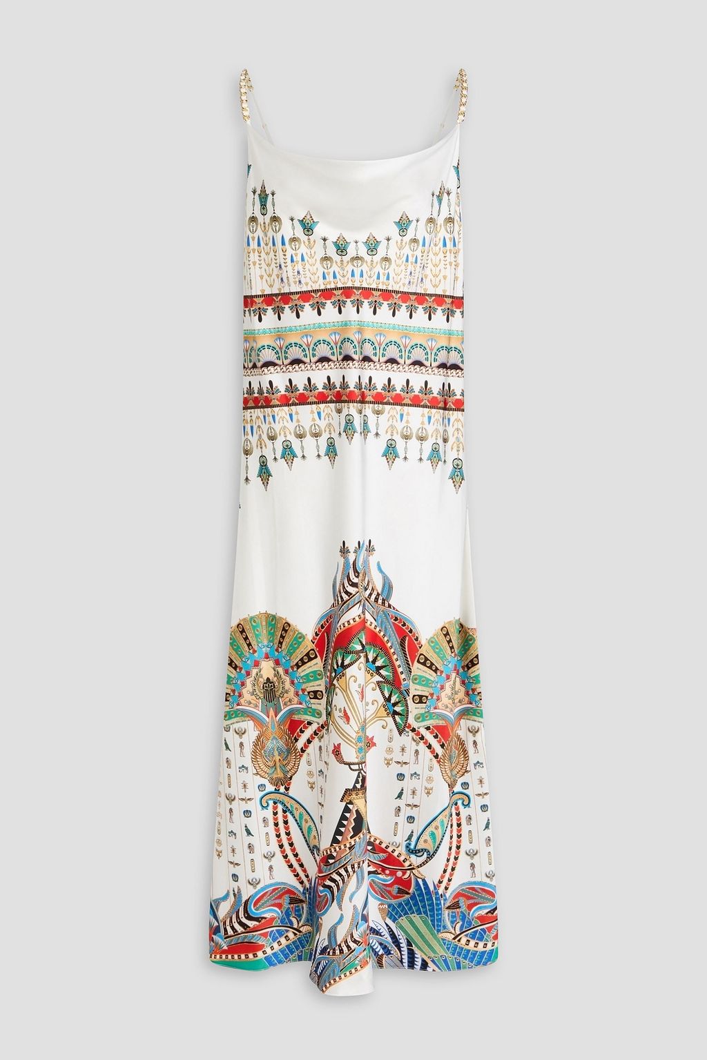 CAMILLA فستان متوسط الطول من الساتان الحريري بتصميم سهل الارتداء مزين بطبعات وسلسلة