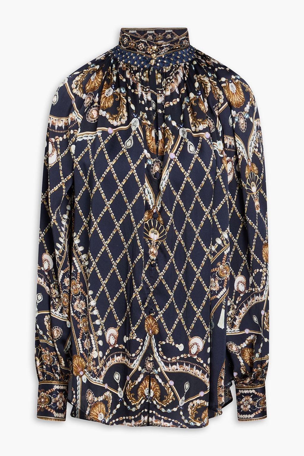 CAMILLA بلوزة من الساتان الحريري مزينة بطبعات