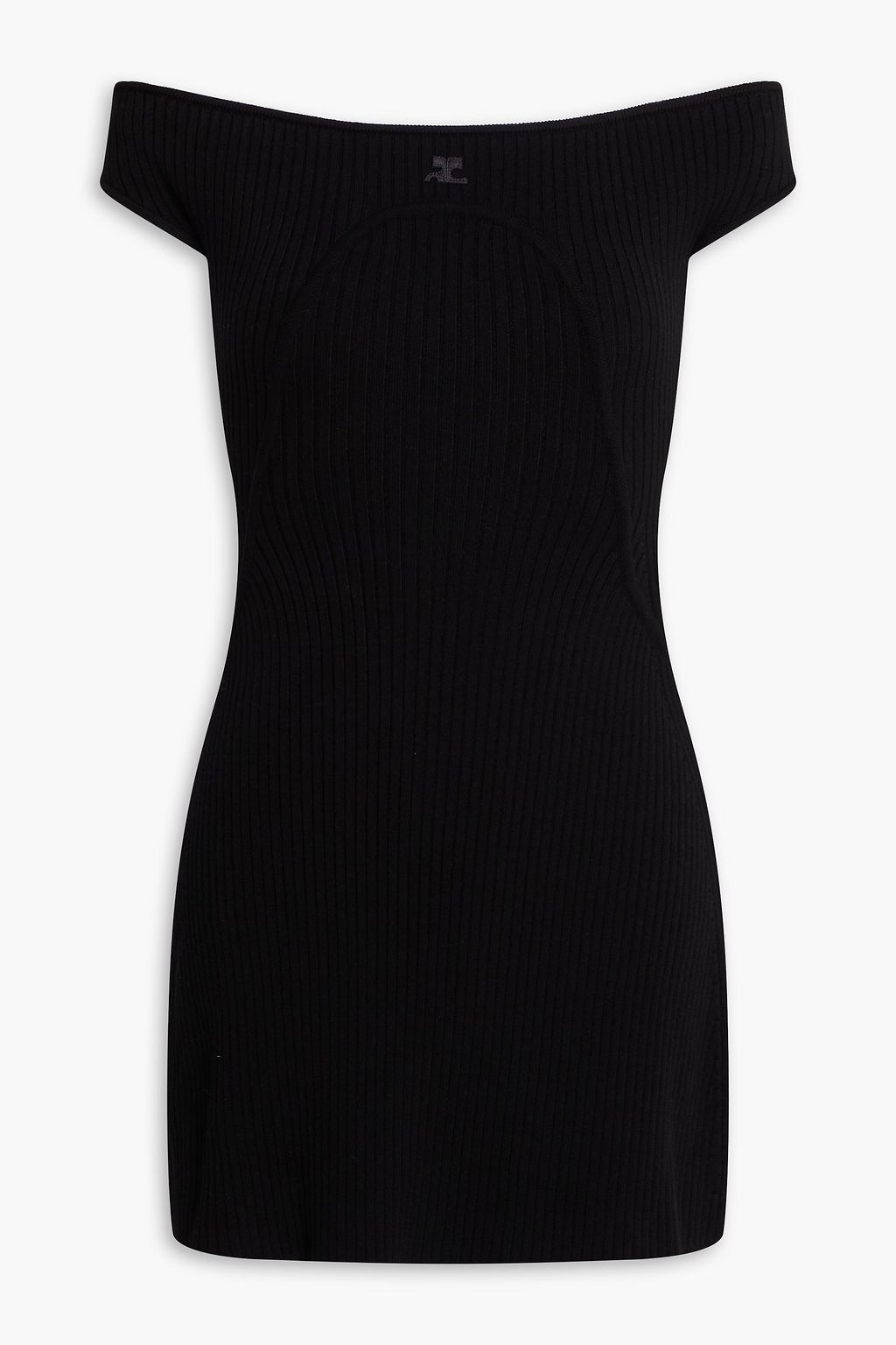 COURRÈGES فستان قصير من نسيج محبوك بنمط مضلع بتصميم مكشوف الكتفين