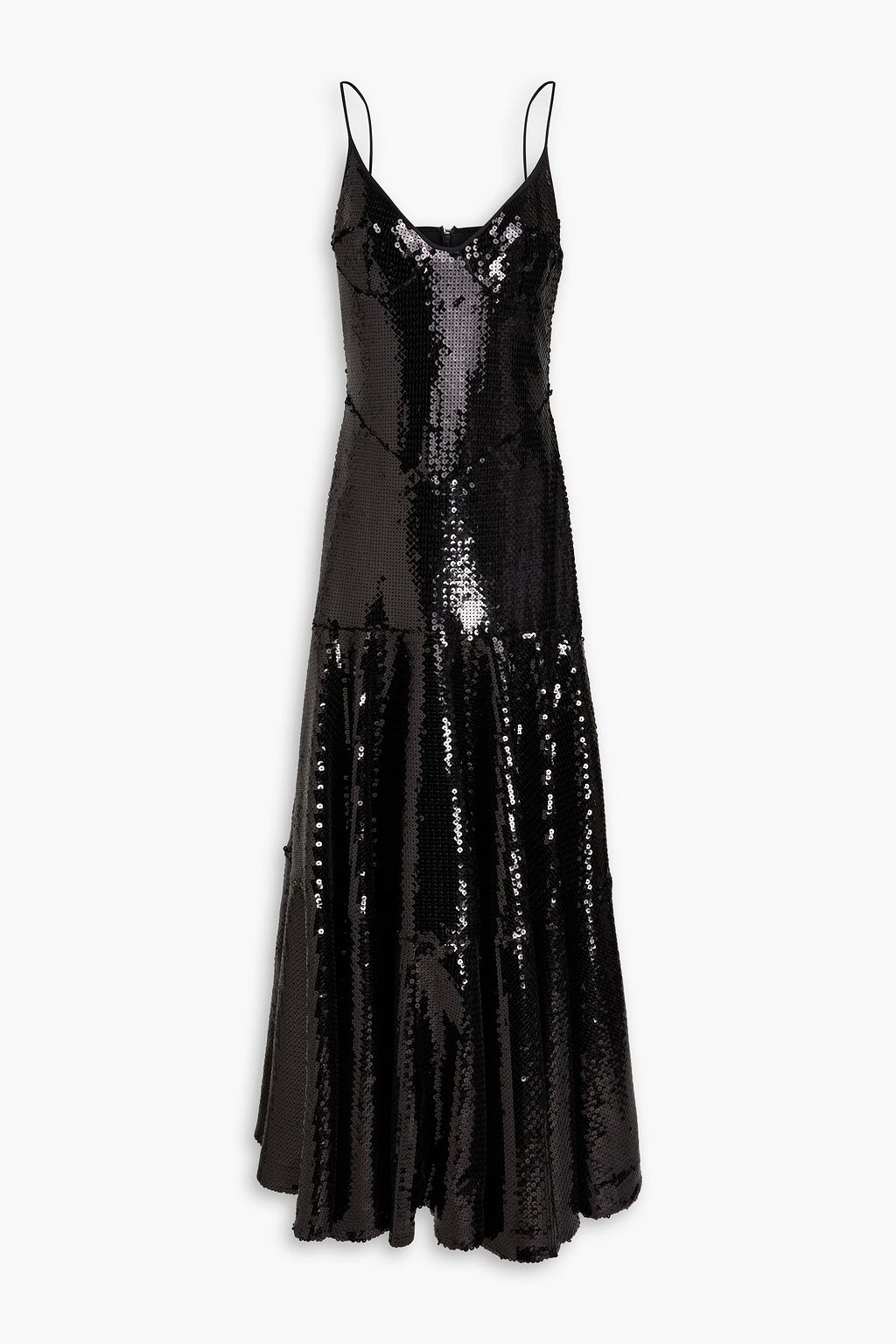 DAVID KOMA فستان كامي طويل من التول مزين بأقراص برّاقة