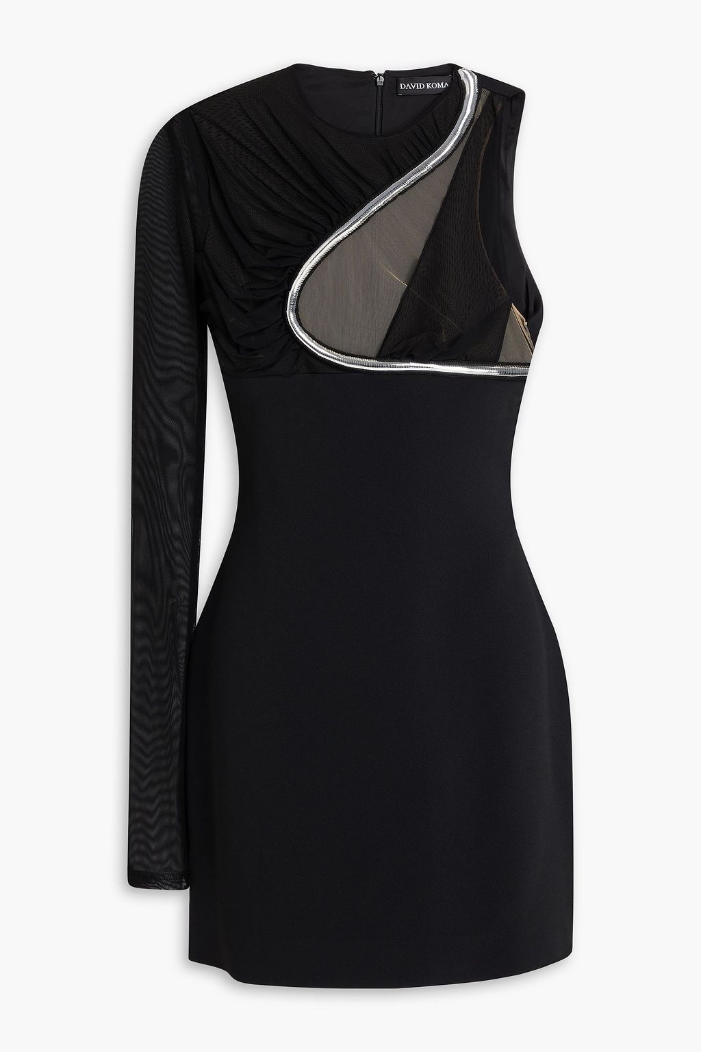 DAVID KOMA فستان قصير بِكُم واحد من التول والكريب المزركش