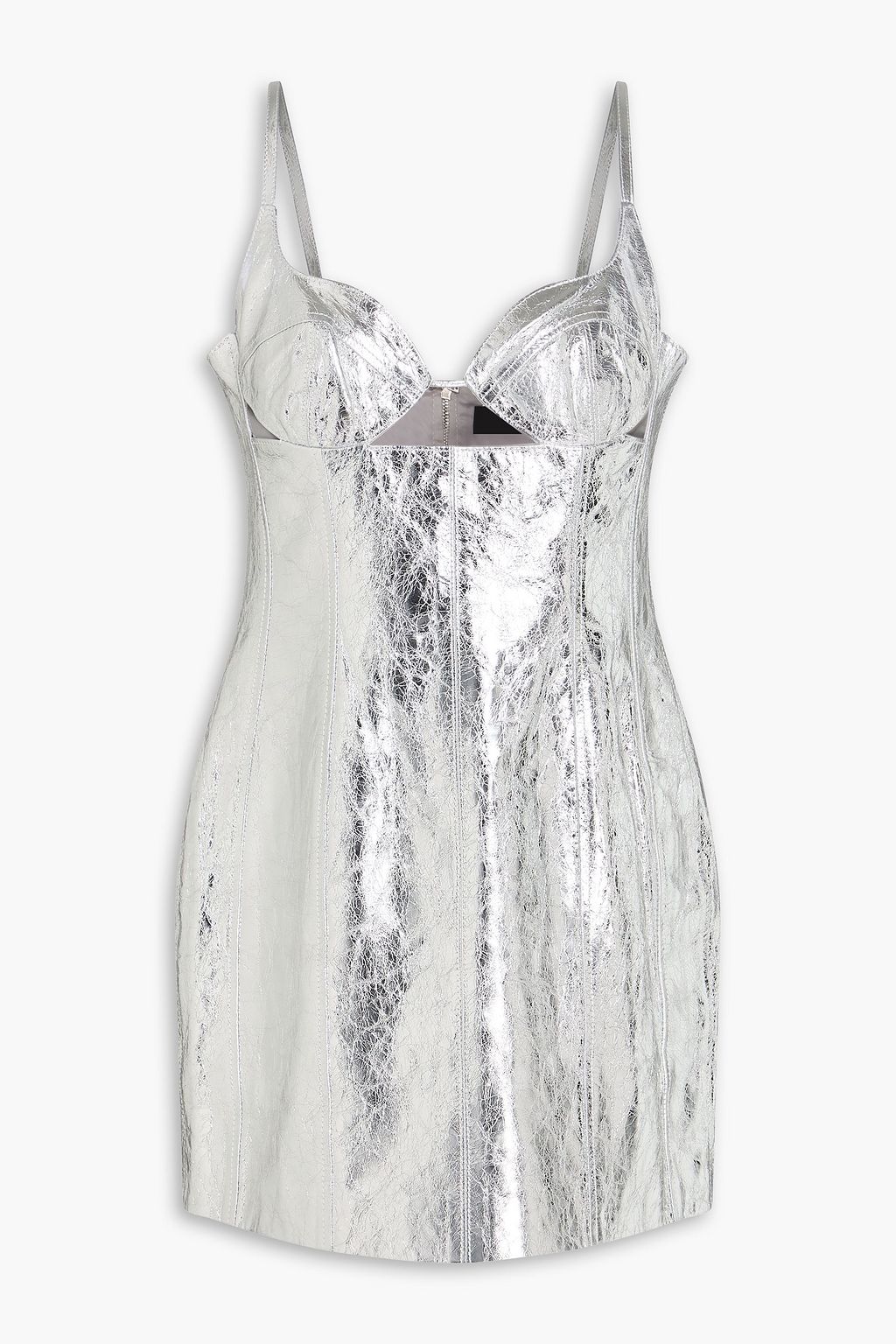 DAVID KOMA فستان قصير من الجلد لون ميتاليك