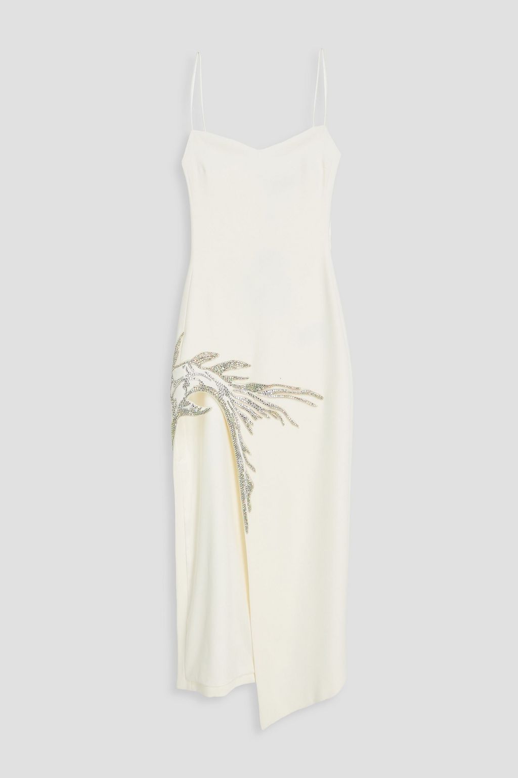 DAVID KOMA فستان متوسط الطول من الكريب بقصّة غير متماثلة مزين بالكريستال