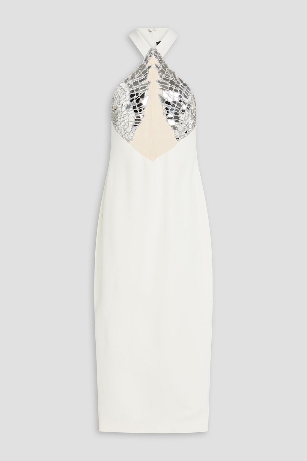 DAVID KOMA فستان متوسط الطول من قماش كادي بأجزاء من التول مزين بزخارف