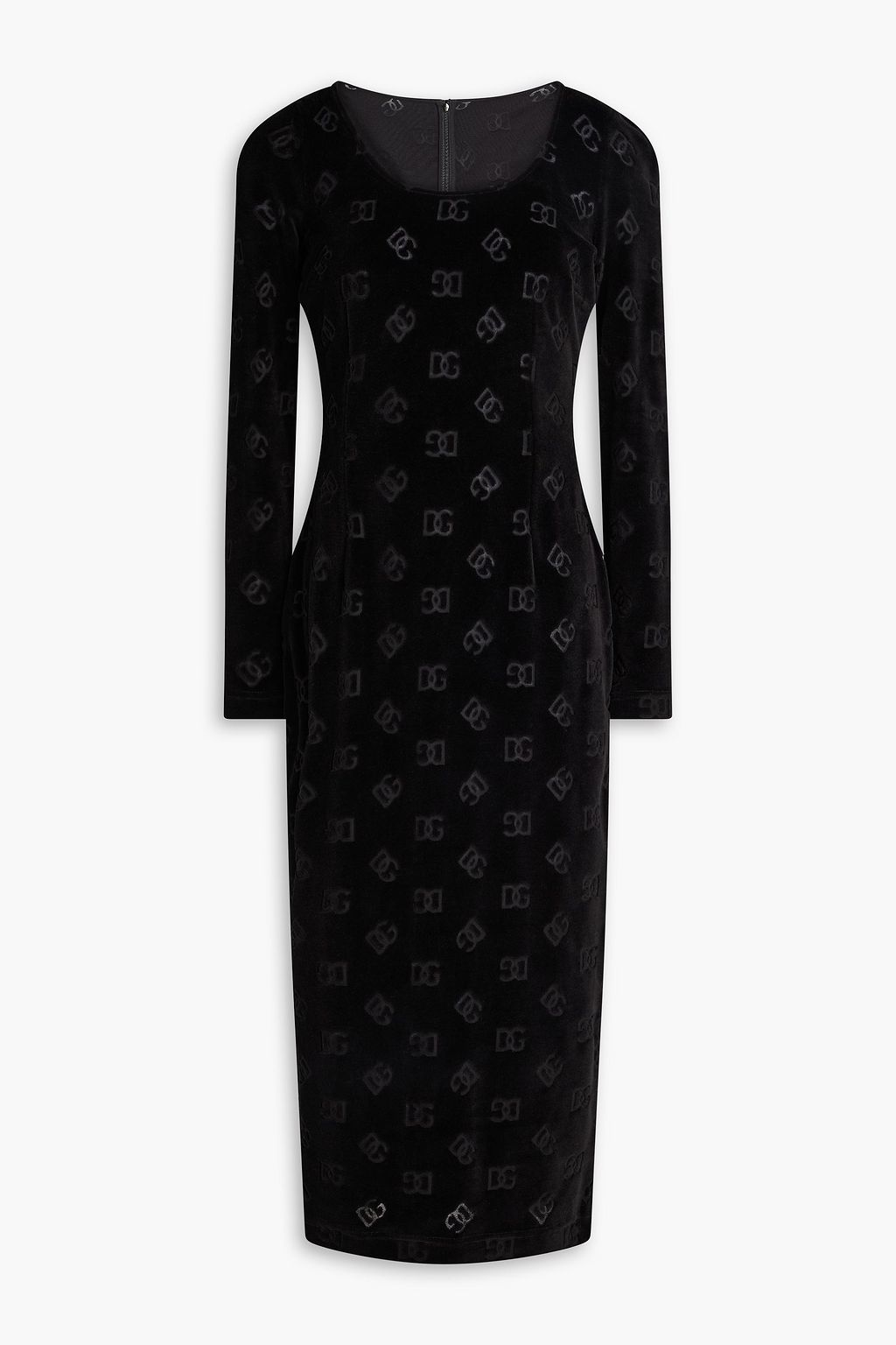DOLCE&GABBANA فستان متوسط الطول من القطن والمخمل
