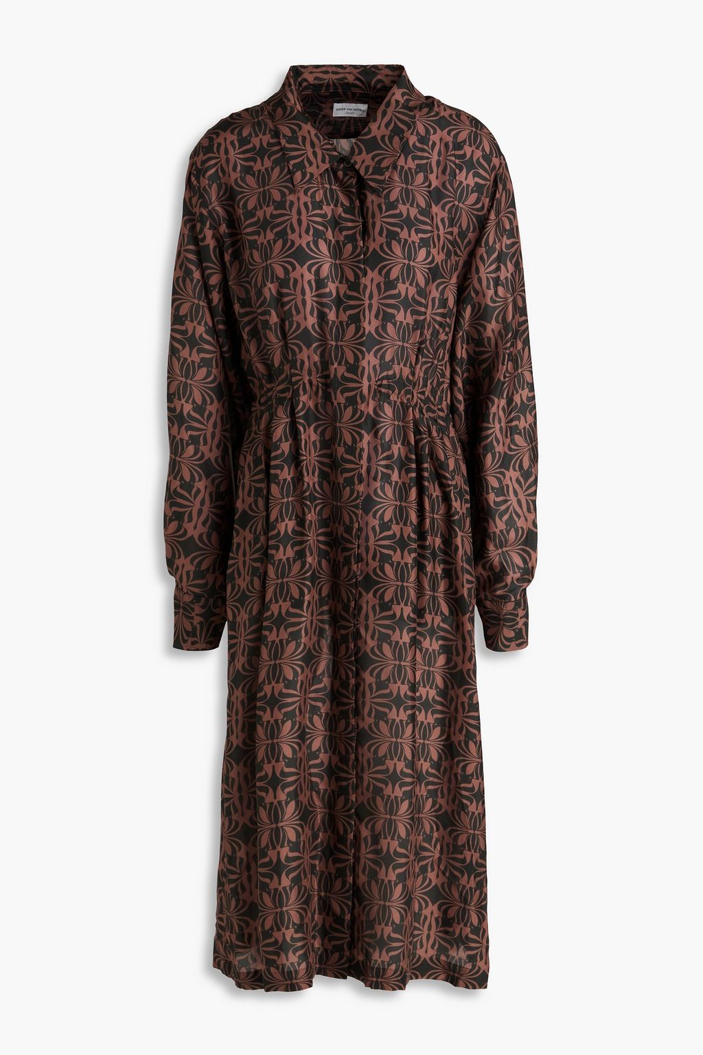 DRIES VAN NOTEN فستان متوسط الطول "دارلوس" بأسلوب القميص من الحرير مزين بطبعات