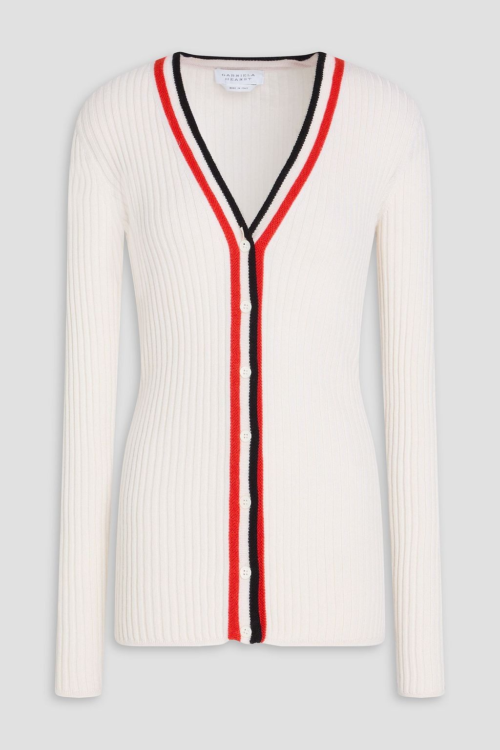 GABRIELA HEARST كارديغان "ميرين" من مزيج الحرير والكشمير بتصميم مخطط
