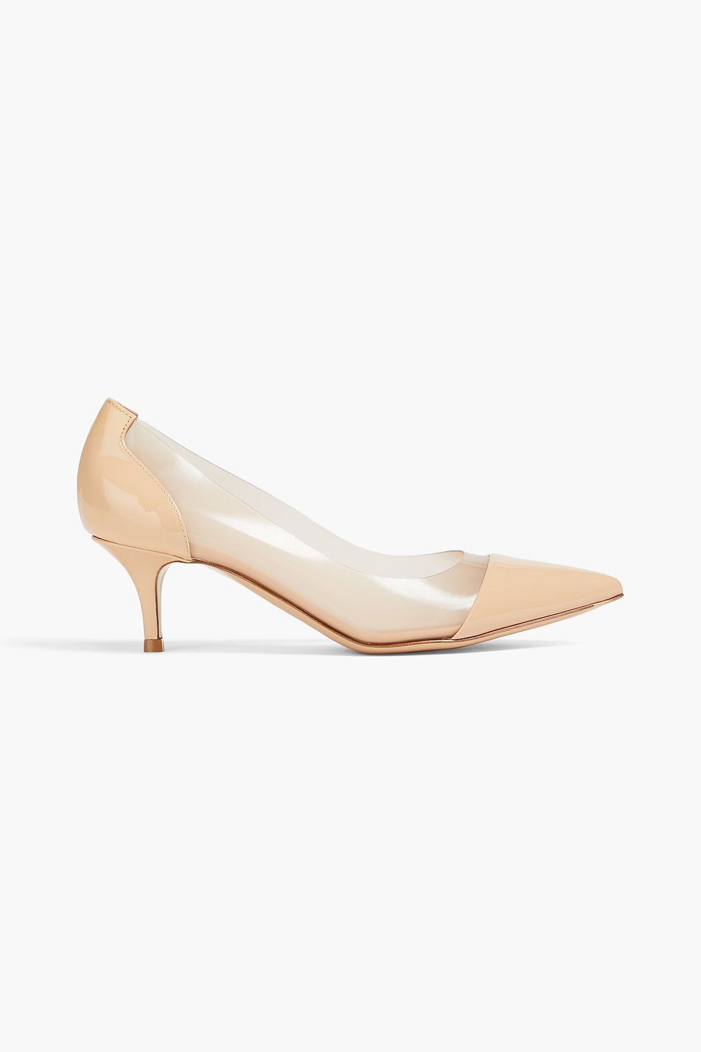GIANVITO ROSSI حذاء بليكسي 55 بكعب عالٍ من الجلد اللامع والبلاستيك الشفاف
