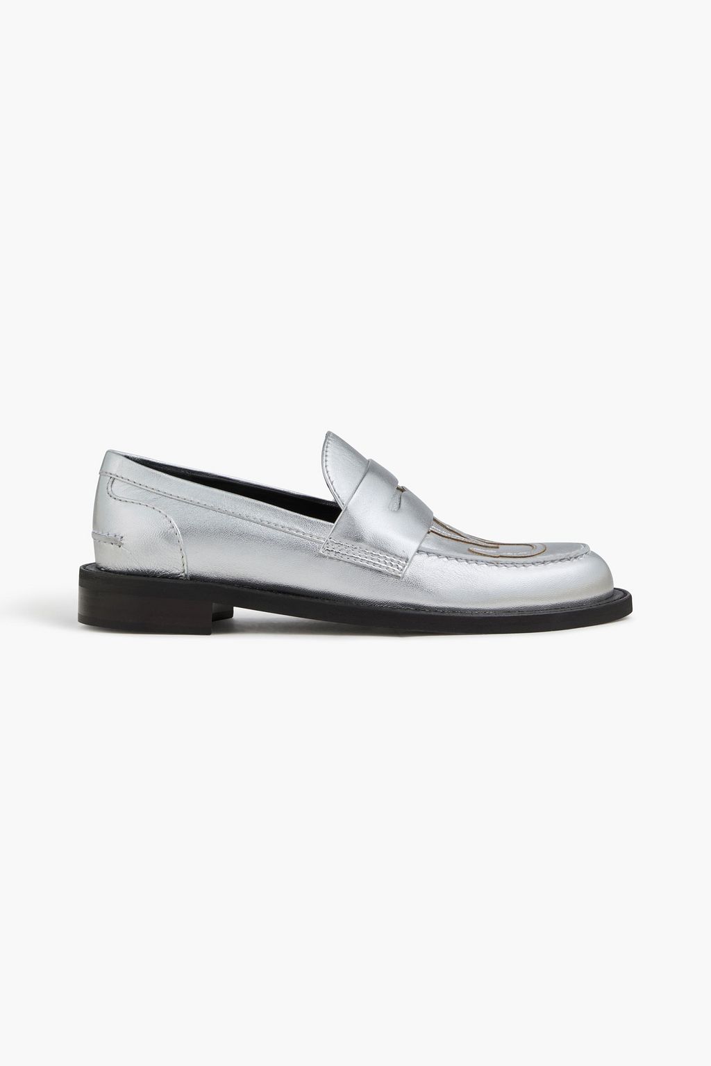 JW ANDERSON حذاء لوفر من الجلد بلون معدني مزين برقعة زخرفية