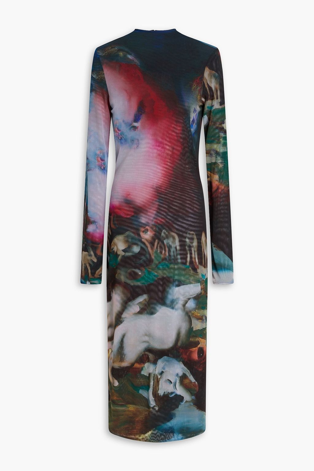 MUGLER + فستان "أمبيرا ويلمان إيمبوزيشن" متوسط الطول من نسيج شبك مطاط مزين بطبعات