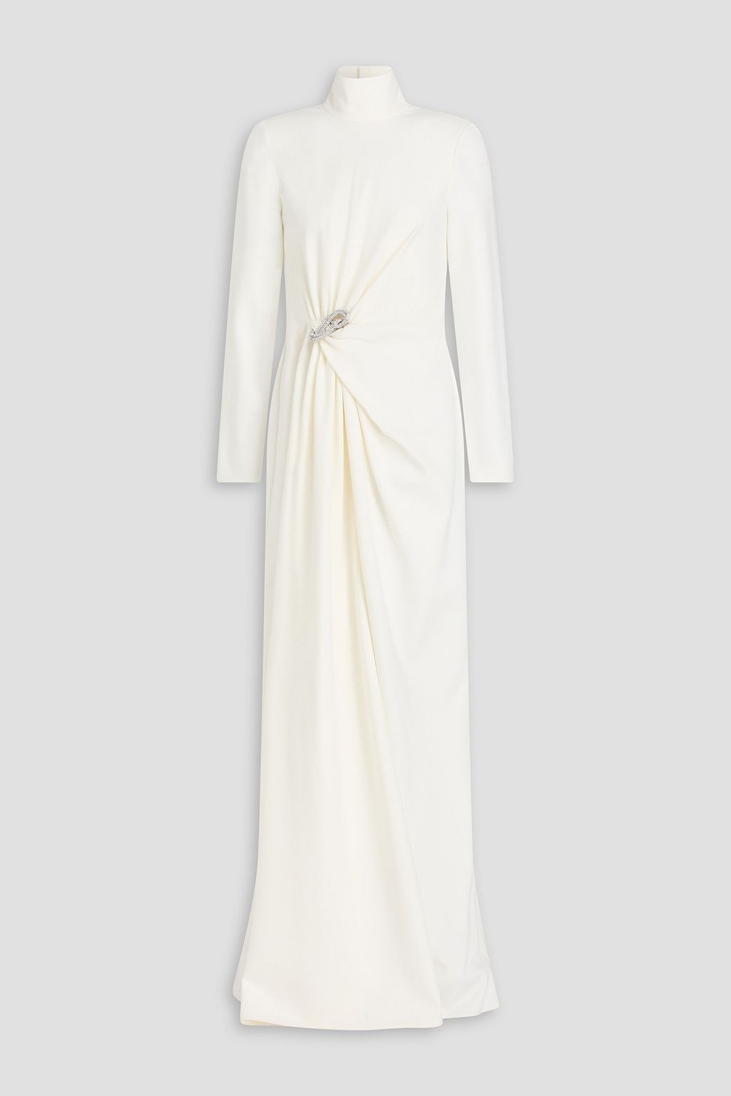 SAFIYAA فستان سهرة بيني من قماش بونتي بتصميم منسدل مزين بالكريستال