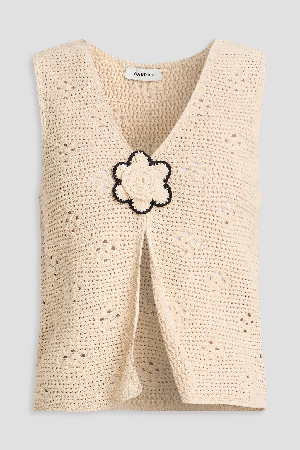 SANDRO بلوزة من نسيج محبوك بنمط كروشيه ومزينة بزخارف الأزهار