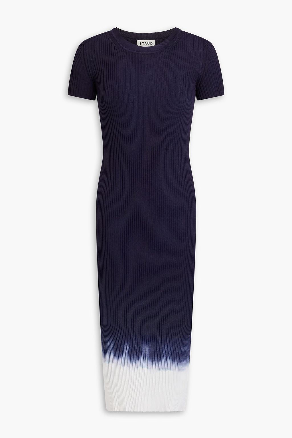 STAUD فستان متوسط الطول "كولين" من نسيج بحبكة مضلعة بتصميم متدرّج الألوان