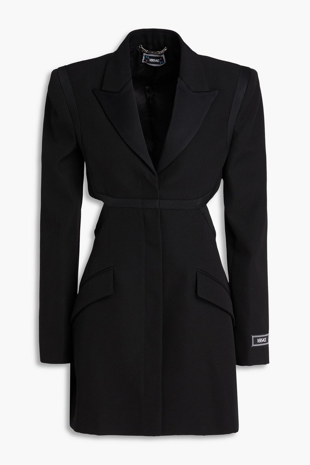 VERSACE فستان قصير من صوف غران دي بودر بفتحات