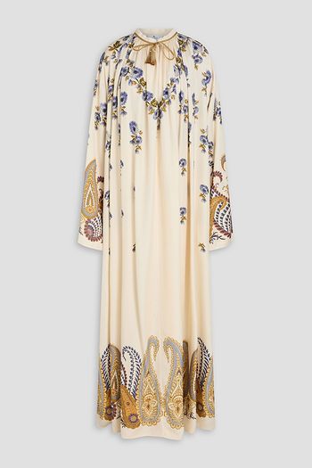 فستان طويل من حرير الكريبون بنقشة البيزلي ومكشكش