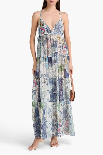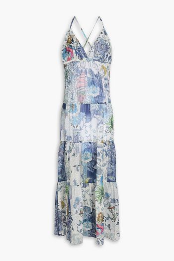 فستان طويل من حرير الكريبون بنقشة البيزلي ومكشكش