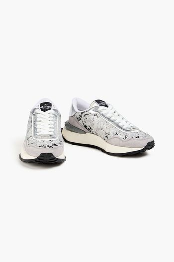 حذاء سنيكرز "فالنتينا" من الجلد والجلد السويدي