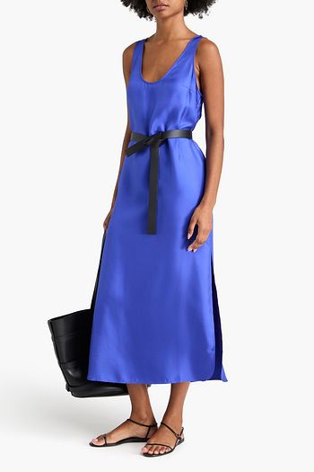 فستان متوسط الطول من حرير تويل بتصميم معقود