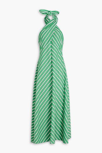 فستان طويل "أنابيلا" بياقة هالتر الدائرية مصنوع من نسيج بحبكة كروشيه