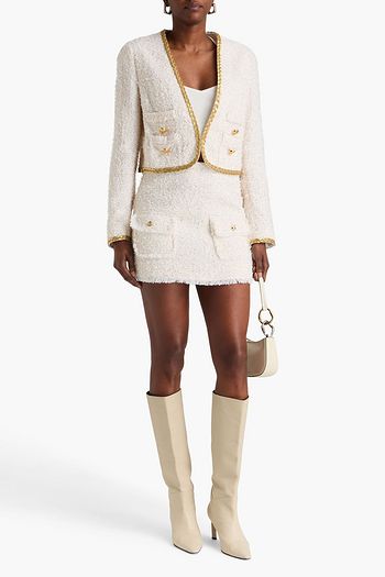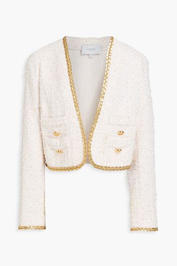 Fringed embellished metallic tweed jacket