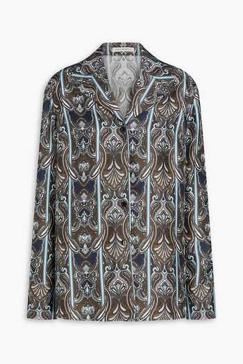 قميص من الحرير بطبعة شعار العلامة وربطة بشكل فراشة