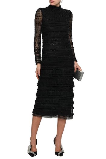 فستان متوسط الطول من قماش الجاكار مزيّن بكسرات