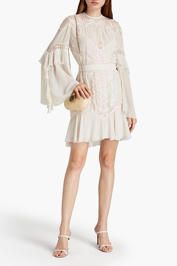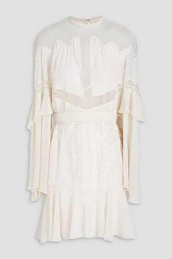 فستان Gaelle قصير من الشيفون المصنوع من مزيج الحرير بلون معدني ومزين بطبعات وكشاكش