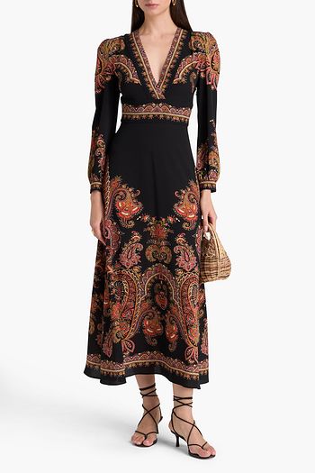 فستان ميديتشي متوسط الطول من حرير صيني بطبعة الأزهار