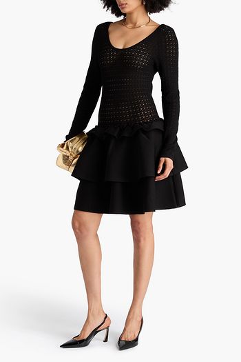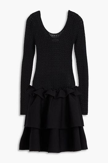 فستان قصير من مزيج الصوف بحبكة كروشيه