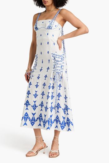 فستان متوسط الطول من قطن بوبلين مزين بطبعة الأزهار