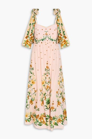 فستان متوسط الطول من القطن بتطريز إنجليزي مزين بفتحات