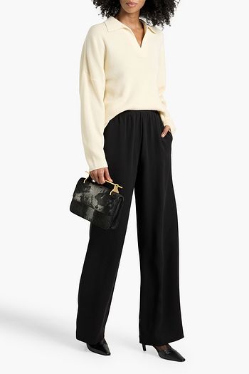 Floral-print linen and silk-blend midi skirt