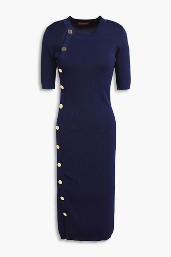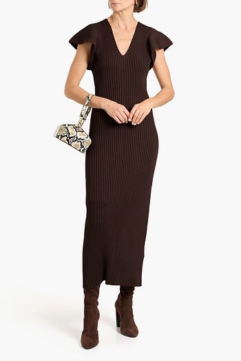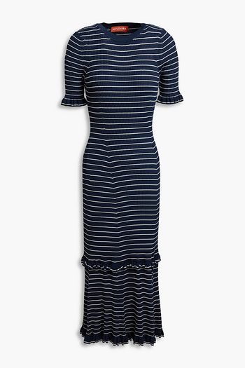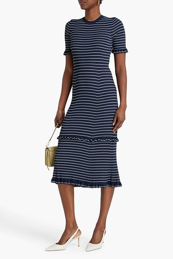 فستان قصير من مزيج الصوف بنمط مضلّع بحواف واسعة