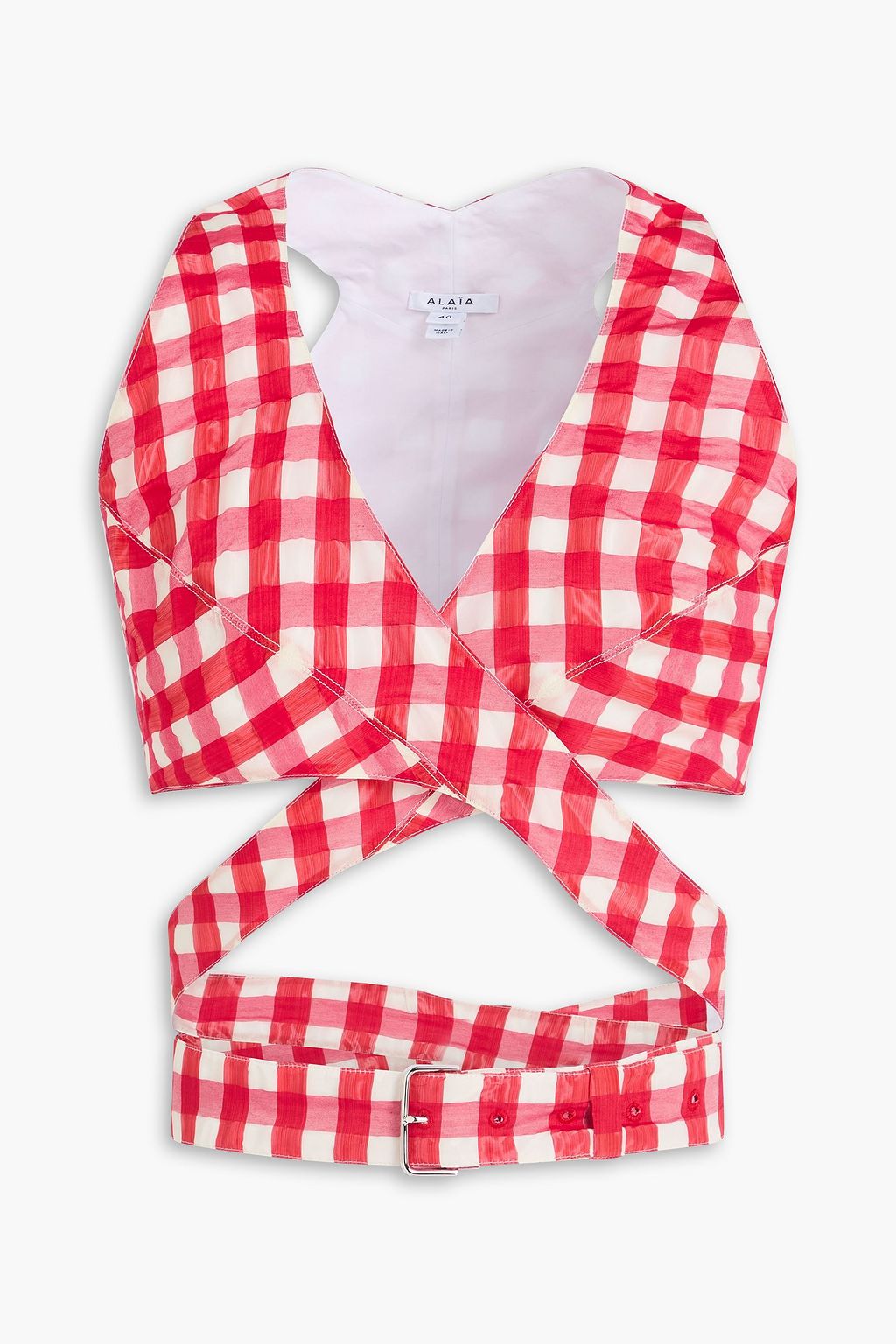ALAÏA بلوزة أركيتايبس قصيرة من الأورغنزا بطبعة مربعات